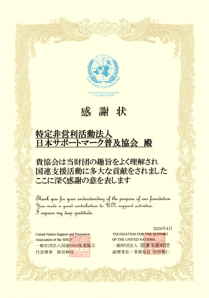 | 法人名 | 特定非営利活動法人日本サポートマーク普及協会 |